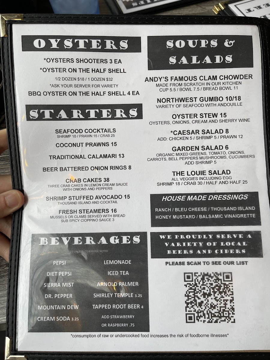 Welcome to Andy's Fish House, a gem located in the charming town of Snohomish, WA. This seafood haven is renowned for its diverse menu that celebrates the fresh flavors of the ocean. Customers rave about the delightful clam chowder, rich and creamy, making it a must-try. The menu boasts an array of standout dishes like the FishWich, featuring crispy fried cod paired with tangy cole slaw, and the indulgent Dungeness Crab Melt served on an English muffin with Tillamook cheese.